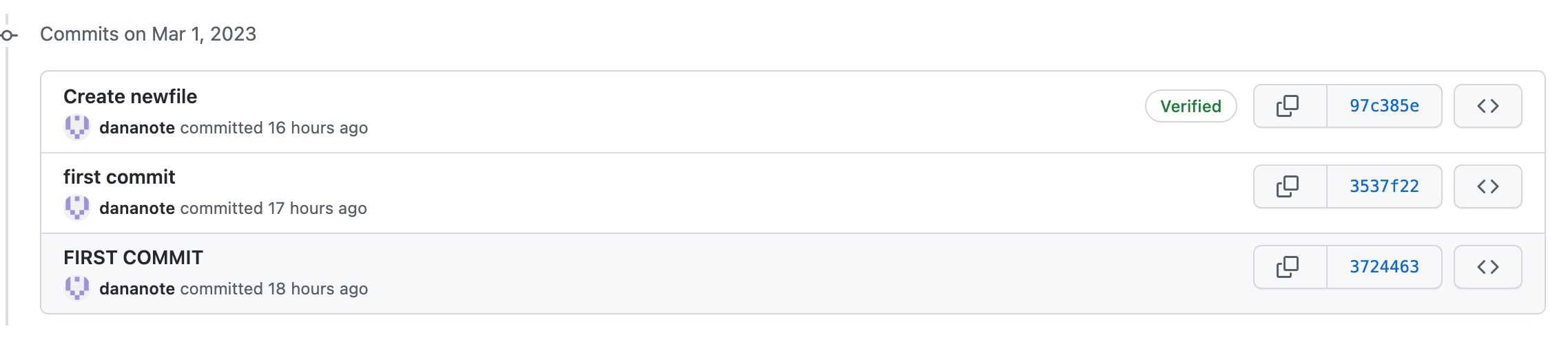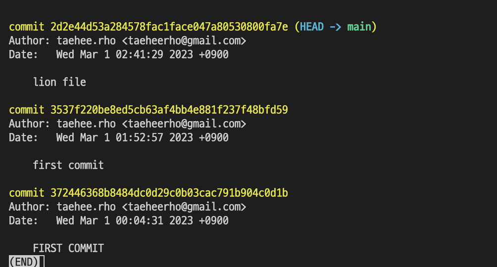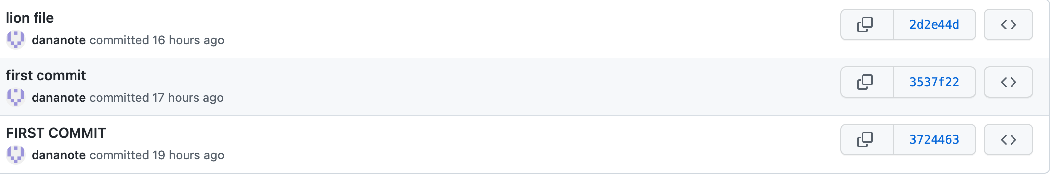 실행결과를 보니 기존에 있었던 'new commit' 은 사라지고 로컬에서 새로 추가한 'lion file'은 추가된것을 볼 수 있다.