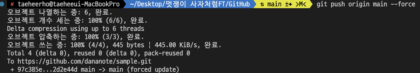 ++추가로) --forece 명령어 대신 -f 로도 쓸 수 있다고 한다.