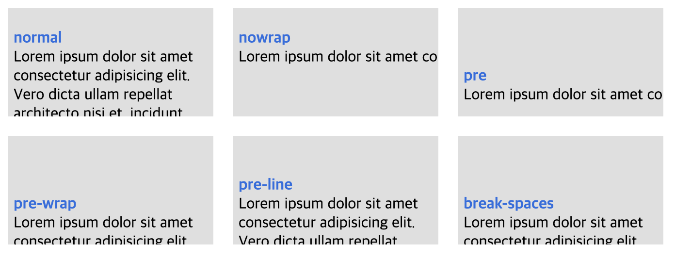 요소 내부의 공백을 줄바꿈, 자동 줄바꿈을 어떻기 처리할지 정하는 속성입니다.