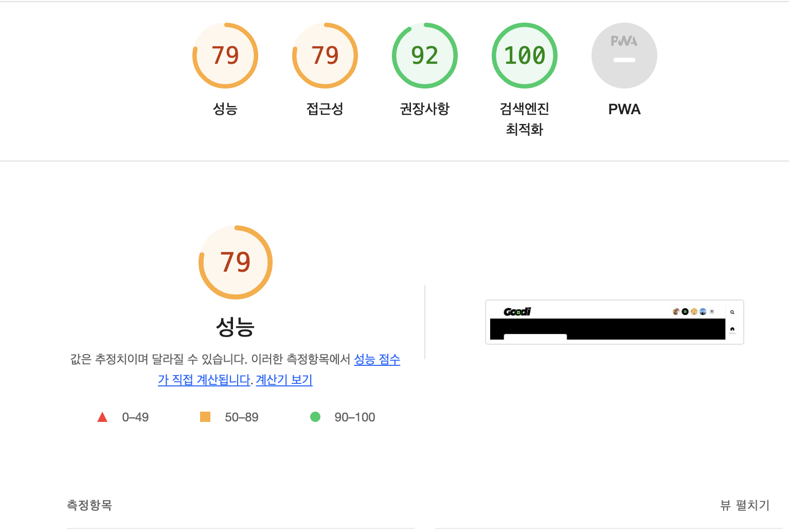 진행하던 프로젝트의 성능을 분석하다 보니 lightHouse 결과 웹 성능이 대체로 60-70점 언저리인것을 발견했다.
