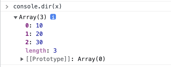 아래 예시에서 'length' 가 출력되는 이유는 dir 로 출력시 모든 프로퍼티를 알려주고 그 안에 'length' 가 있기 때문에 보여주는 거임